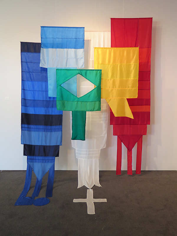 Andrea Canepa, Sin título (banderas), 2014. Tela sintética, varas de madera y nylon, medidas variables